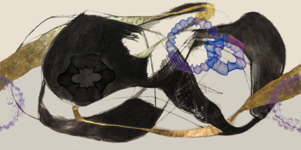 Set against a backdrop of mechanical whirring, deep humming, indistinct human speech, and a pulsing rhythm, elements in the sound design are often synchronized with the kinetic energy of the animated drawings. A second figure joins us bookending the flow of invention, again framed by a digital rupture leaving us with birdsong.